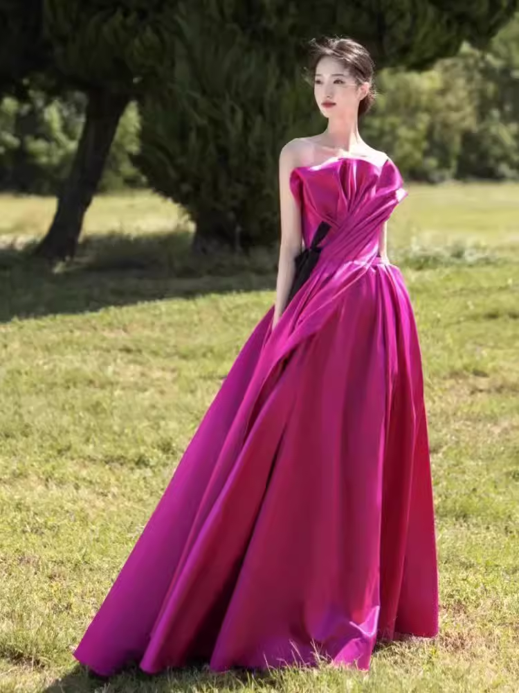 Simple A Line Strapless Satin Long Prom Dresses HZ1024