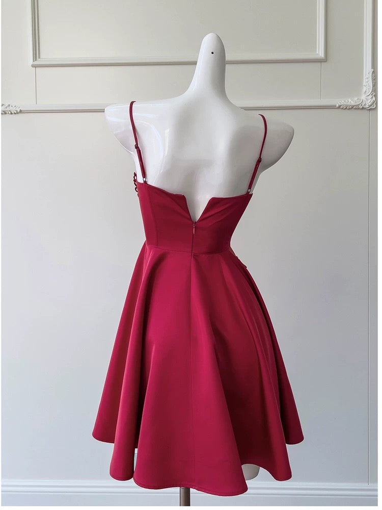 Simple A line Straps Burgundy ShortHomecoming Dress Birthday Dresses With Butterfly HZ1024