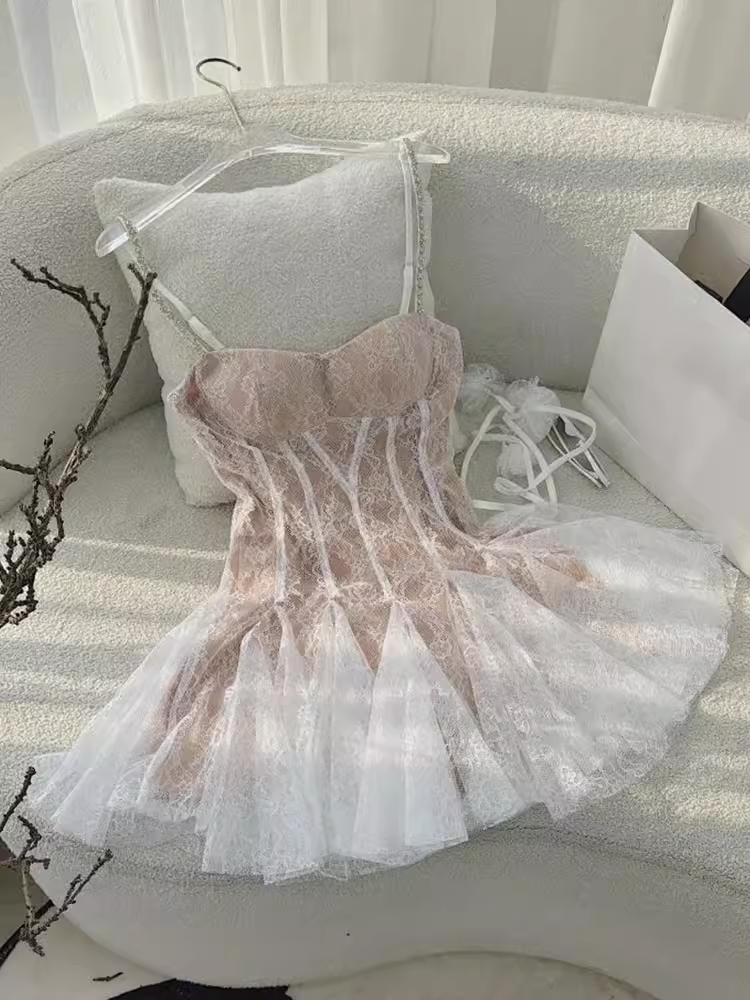 Simple A Line Straps Lace Short Birthday Dress Champagne Homecoming Dresses HZ1024