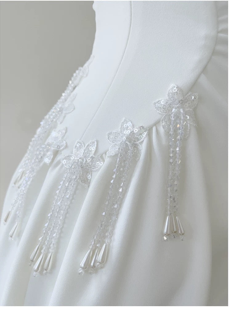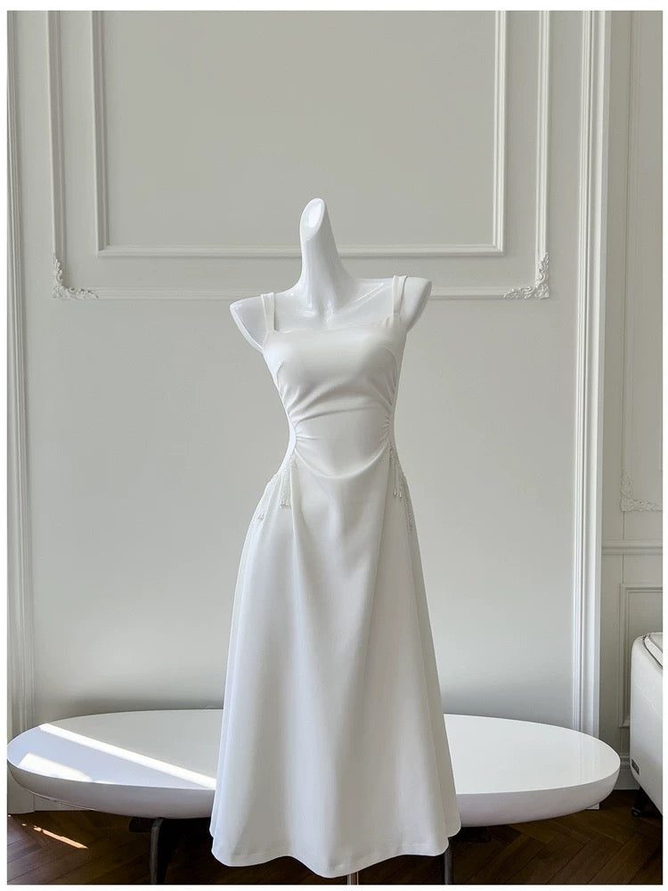 Simple A Line Straps White Satin Ankle Length Prom Dress Evening Dresses HZ1024