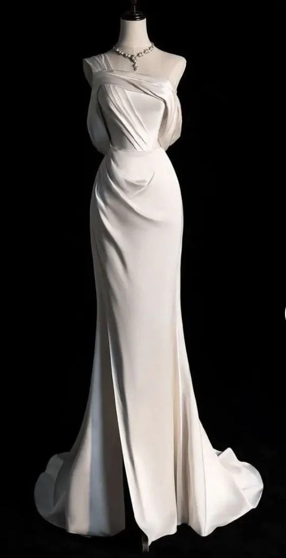 Simple Mermaid Strapless Sleeveless Satin White Long Prom Dress HZ1024