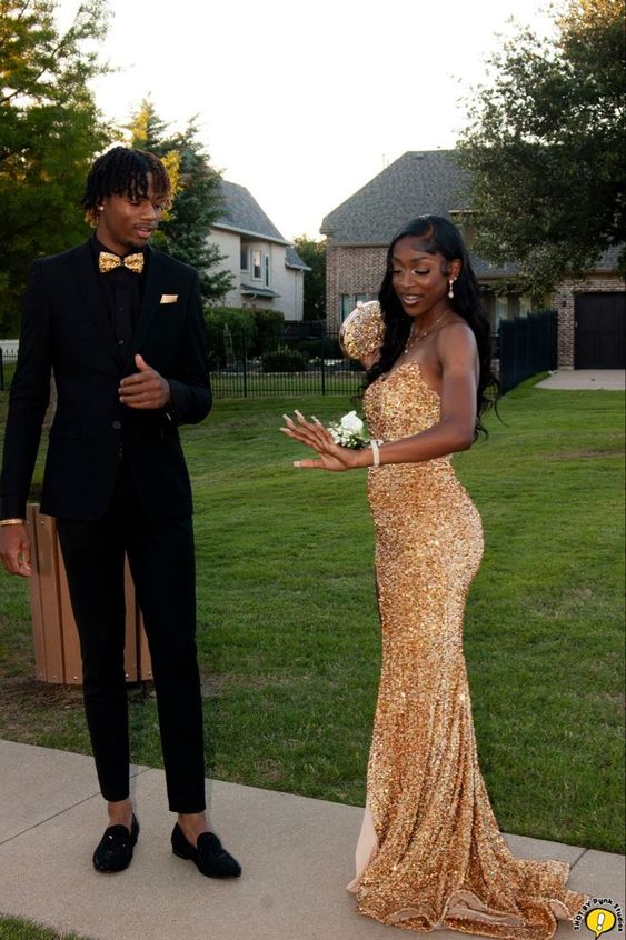 Simple Sheath Sweetheart Sequin Gold Long Prom Dresses HZ1024