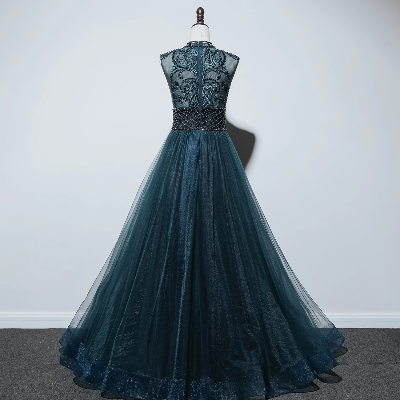 Sparkly A line High Neckline Floor Length Tulle Green Prom Dresses HZ1024