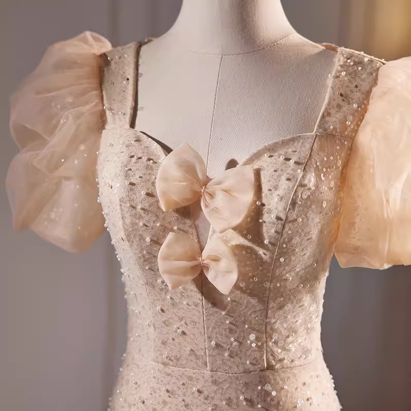 Sparkly Mermaid Champagne Sequin Long Prom Dress HZ1024