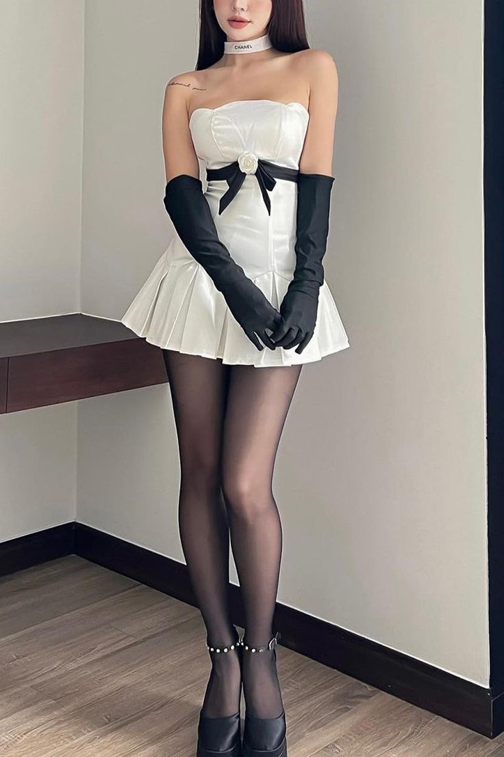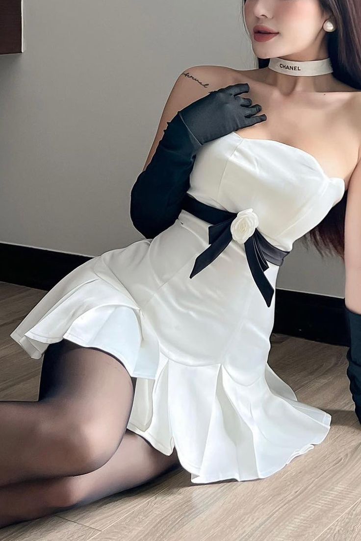 Strapless Sleeveless Floral Pleated Satin A-Line Mini Homecoming Dress HZ1024