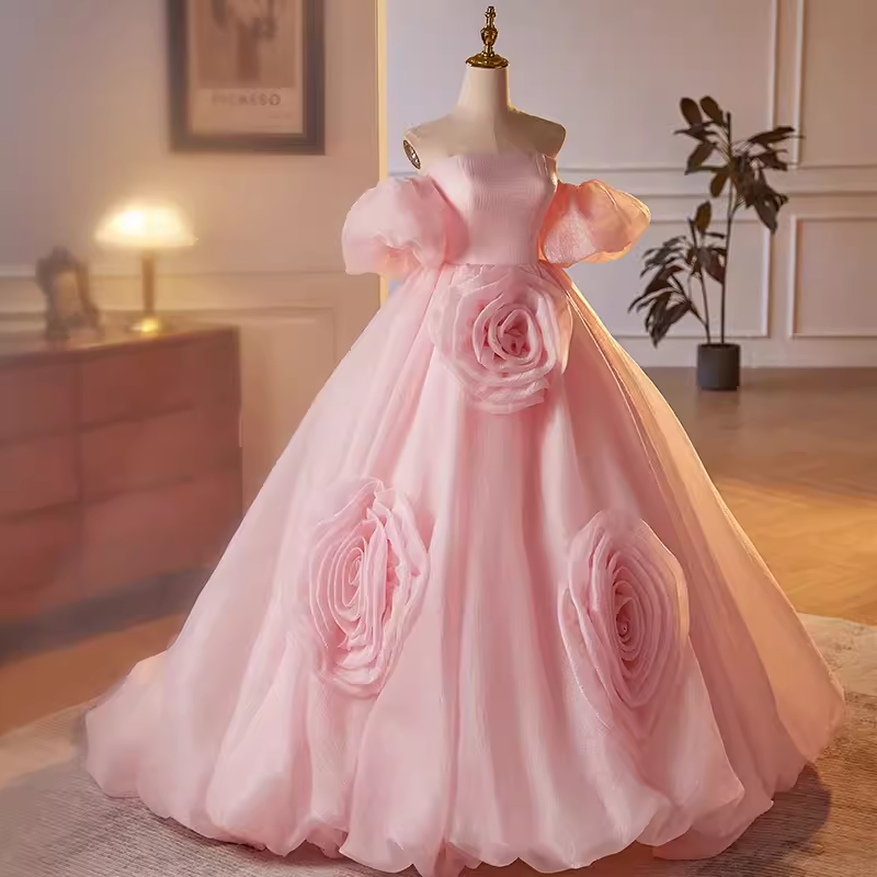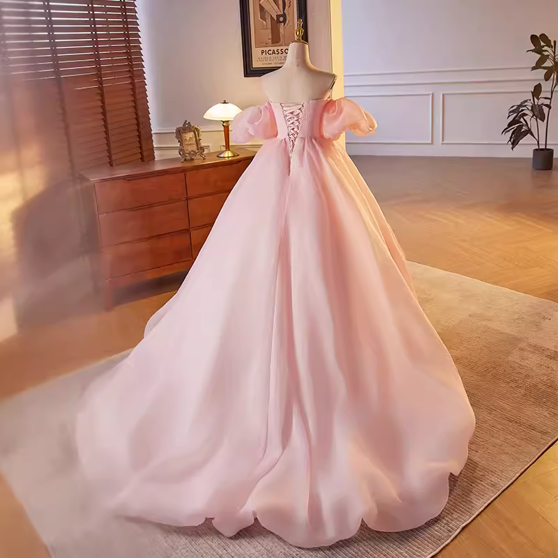 Stunning Ball Gown Off The Shoulder Organza Pink Sweet 16 Dresses HZ1024