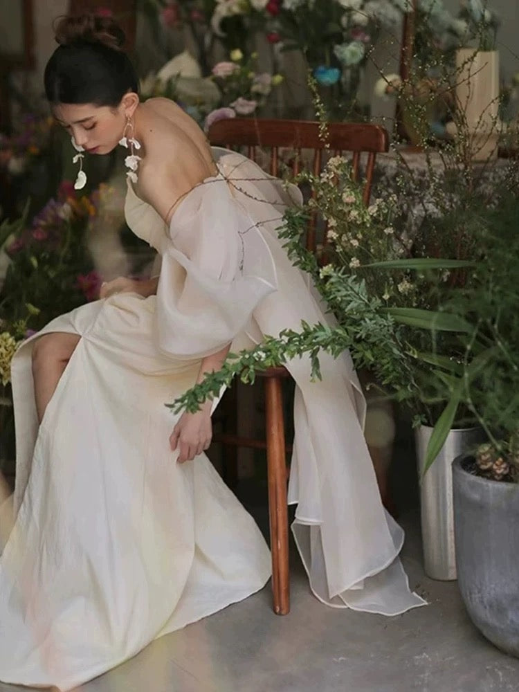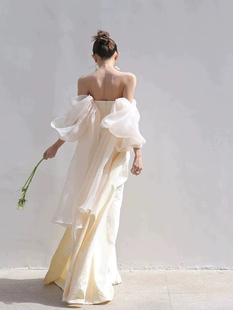 Timeless Mermaid Off The Shoulder Long Tulle White Wedding Dresses With Ruffles HZ1024