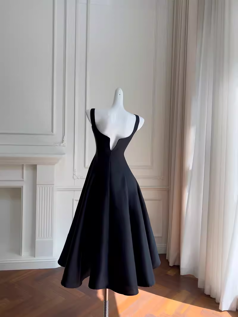 Unique A line Straps Satin Black Homecoming Dress 18th Birthday Outfit HZ1024