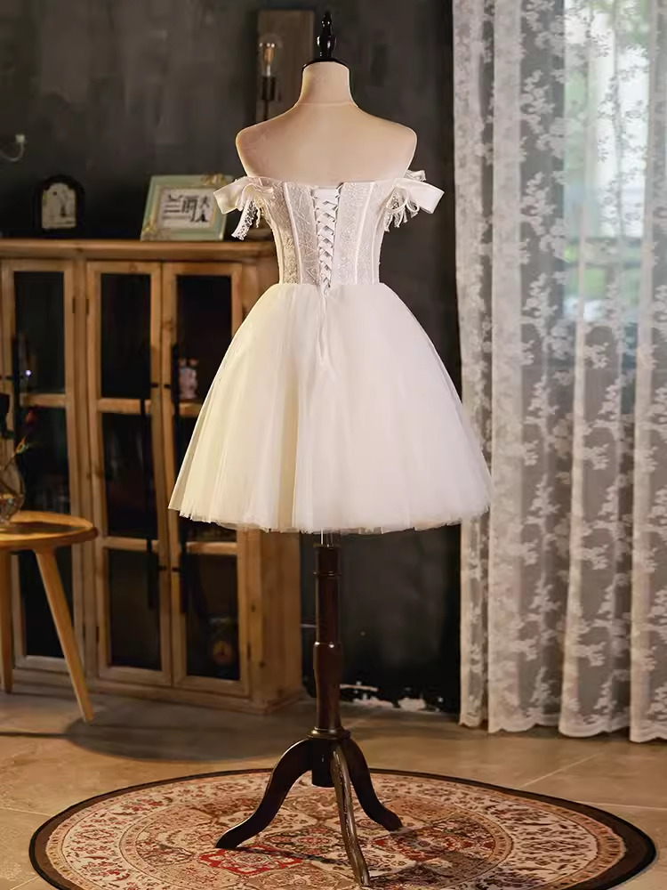 Vintage Ball Gown Off The Shoulder White Birthday Outfits Lace Homecoming Dresses HZ1024