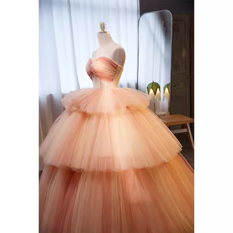 Vintage Ball Gown Strapless Tulle Pink Sweet 16 Dresses HZ1024