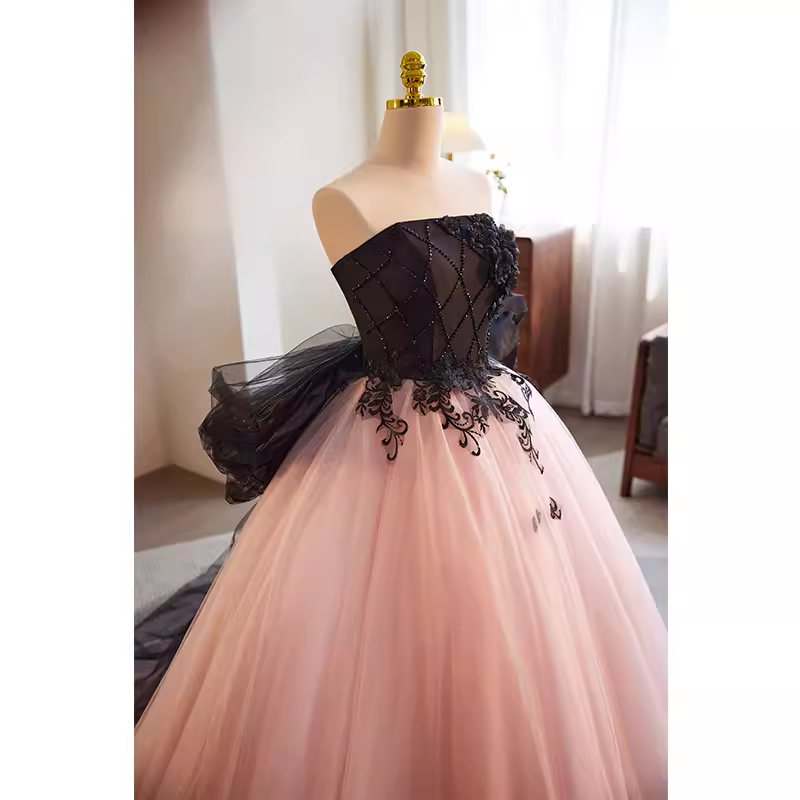 Vintage Ball Gown Strapless Tulle White Pink Sweet 16 Dresses HZ1024