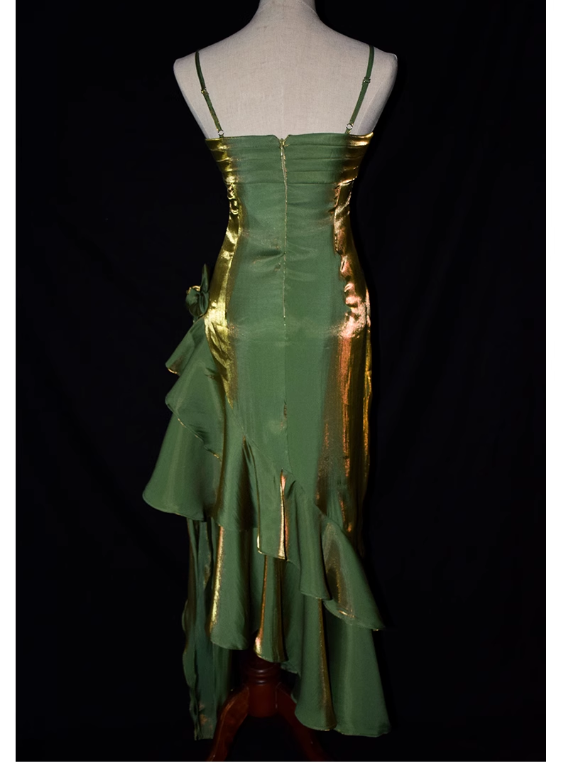 Vintage High Low Straps Ruffles Green Prom Dresses HZ1024