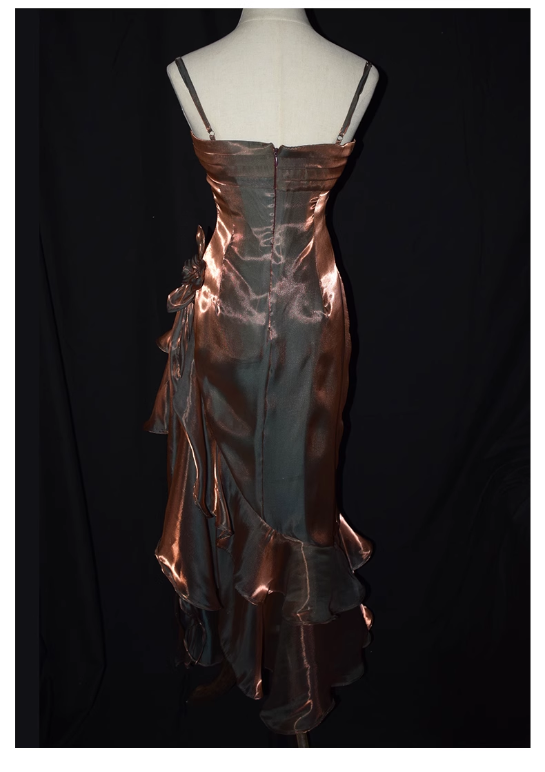 Vintage High Low Straps Ruffles Long Prom Dresses HZ1024