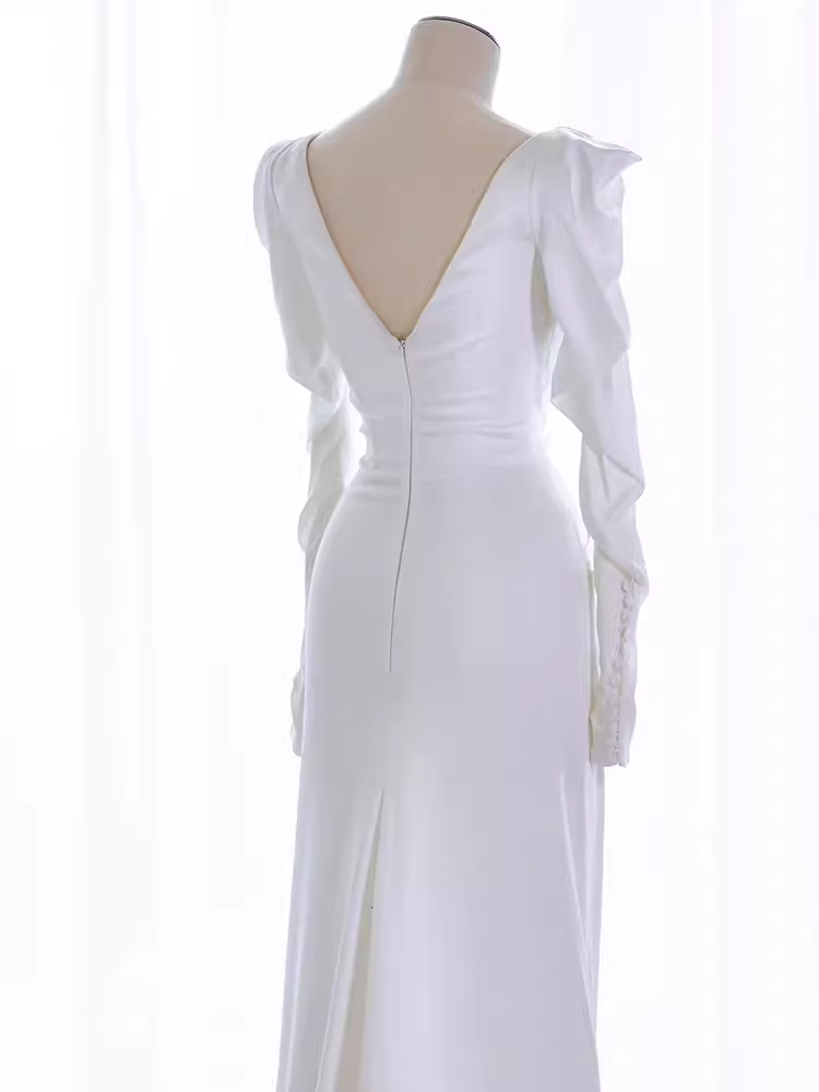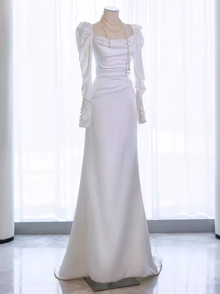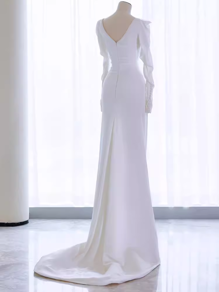Vintage Mermaid Long Sleeves White Satin Long Wedding Dresses HZ1024