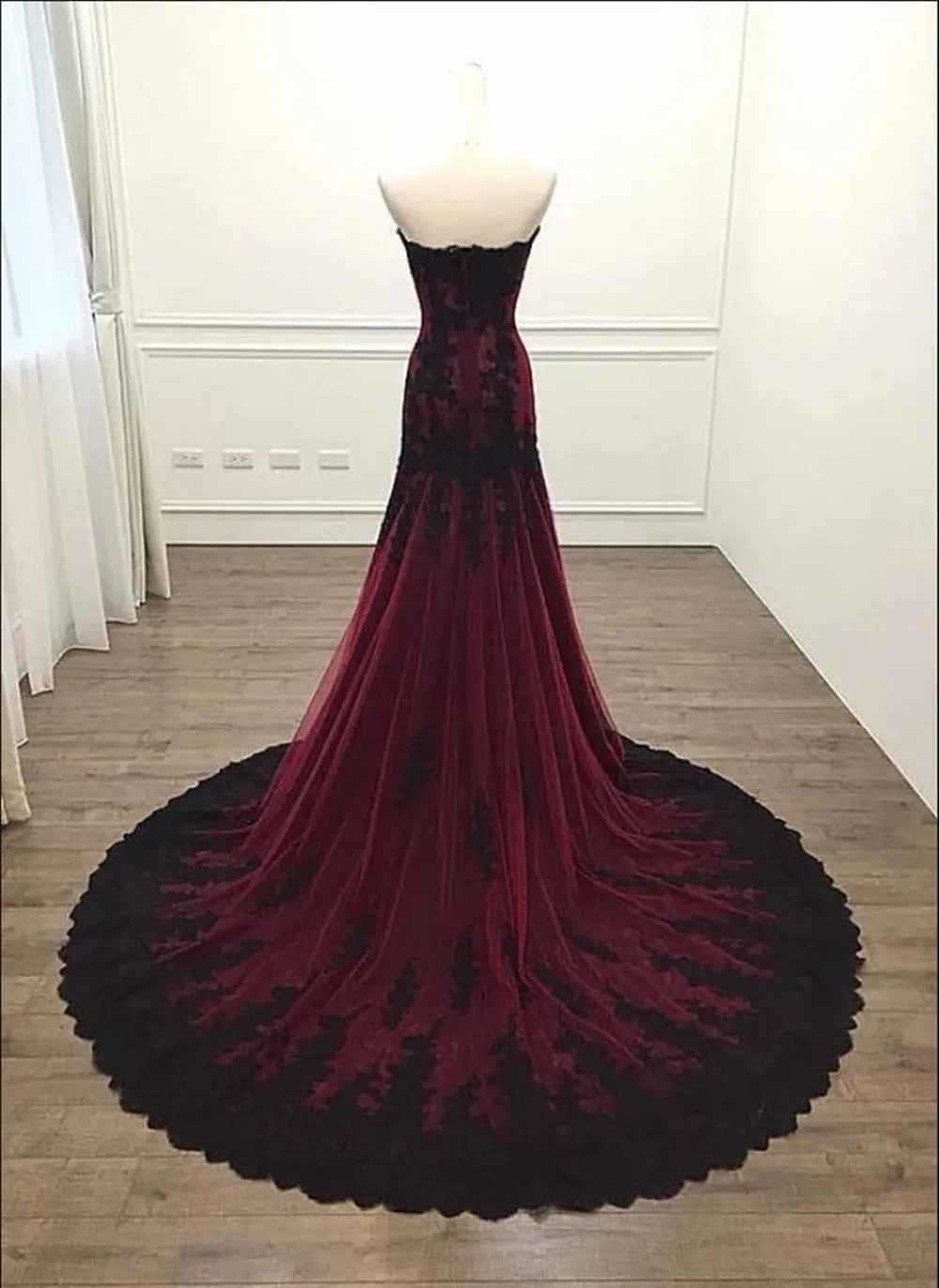 Vintage Mermaid Strapless Burgundy Lace Evening Dress Prom Dress HZ1024