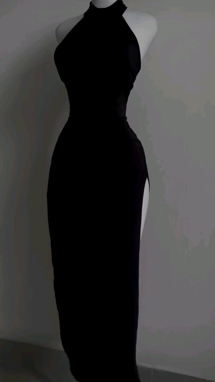 Vintage Sheath High Neckline Black Long Prom Dress HZ1024
